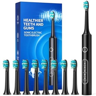 19,99 €Produkt kaufenElektrische Zahnbürste für Erwachsene,Schallzahnbürsten Schnellladung 4 Stunden Dauer 60 Tage,Sonic Elektrische Zahnbürste mit 40000 VPM,8Bürstenköpfen und 5- Modi(Schwarz)