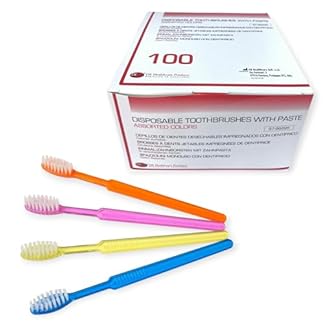 DE Healthcare Products – Einmalzahnbürsten mit Zahnpasta (100 Stück), einzeln hygienisch verpackt, 4 untersch. Farben (4x 25 Stück)