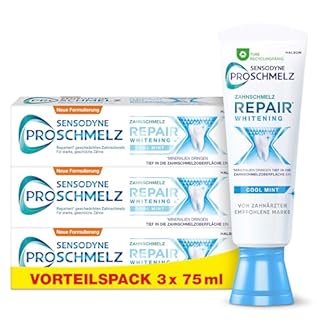 2,95 €Produkt kaufenSensodyne ProSchmelz Repair Whitening Zahncreme, 3x 75ml, tägliche Zahnpasta mit Fluorid für weiße Zähne, repariert nachweislich durch Säuren geschwächten Zahnschmelz & entfernt Verfärbungen