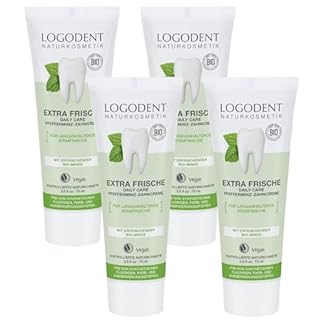 Angebot! Ursprünglicher Preis war: 8,43 €7,99 €Aktueller Preis ist: 7,99 €.Produkt kaufenLOGODENT Naturkosmetik EXTRA FRISCHE daily care Pfefferminz Zahncreme, Mit Bio-Kamille und Bio-Pfefferminzöl, Zur Gesunderhaltung des Zahnfleisches, Vegan, 1 x 75ml (Packung mit 4)