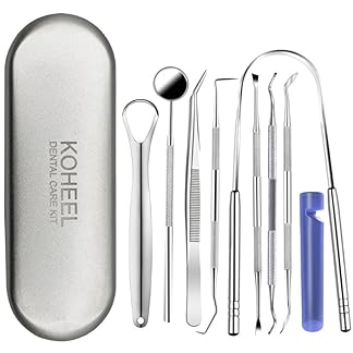 4,49 €Produkt kaufenKOHEEL Zahnärztliche Werkzeuge mit Metallkoffer, 8 Stück Zahnreinigungswerkzeuge, Plaque entfernen, Mundhygieneset mit 2 Arten von Zungenschaber, Zahnsteinschaber, Zahnfleischreiniger, Zahnsonde