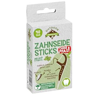 200 x Outdoor Freakz Zahnseide Sticks (jeweils 40 Stück), plastikfreie Verpackung, Sticks aus 50% Bio-Kunststoff auf Basis von Reishülsen