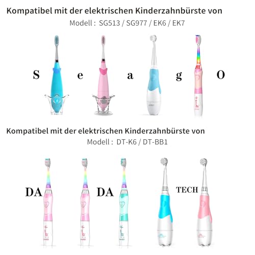 【Breite Kompatibilität】:Kompatibel anstelle Seago kinder zahnbürste SG513/ SG977/SG915/SGEK6/SGEK7, Dada Tech DT-K6/DT-BB1,K3, Ersatzbürsten kompatibel mittels Brush-Putzerl KidzSonic Elektrische Zahnbürste Flamingo/Dinosaurier/Rocket/ Unicorn Nachfolge.