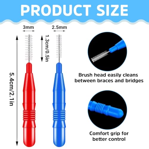 100 Bereich Interdentalbürsten: Das Paket enthält 100 Bereich Interdentalbürsten, abgesondert, sauber und hygienisch, in den Farben Rot und Blau. Die Zahnzwischenraumbürsten haben eine tragbare Größe und sind in ausreichender Absolutbetrag erhältlich, um Ihren täglichen Gebrauchs- und Ersatzbedarf zu decken