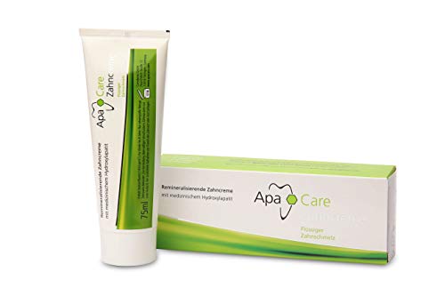 Medizinische Zahnpflege mit flüssigem ZahnschmelzMit der Anwendung von ApaCare Zahnpflege-Produkten folgen Sie der Empfehlung vieler Zahnärztinnen und Zahnärzte. Allesamt ApaCare Zahnpflege-Produkte enthalten flüssigen Zahnschmelz (medizinisches Hydroxylapatit), der Ihre Zähne und das Zahnfleisch vor Erkrankungen als Karies und Parodontitis optimal schützt, kleinere Schäden repariert, Empfindlichkeiten versiegelt und zu glänzend-weißen Zähnen führt. ApaCare Remineralisierende Zahncreme Flüssiger Zahnschmelz glättet, versiegelt, hellt ihre Zähne aufApaCare Zahncreme enthält neben Natriumfluorid flüssigen Zahnschmelz (Hydroxylapatit). Dieses hochaktive Mineral stärkt Ihre Zähne und härtet Ihren Zahnschmelz bei der täglichen Zahnpflege, morgens und abends. An Stelle die gesamte Familie. An Stelle Kinder bis 6 Jahre: Gewiss eine erbsengroße Betrag Zahncreme benutzen.