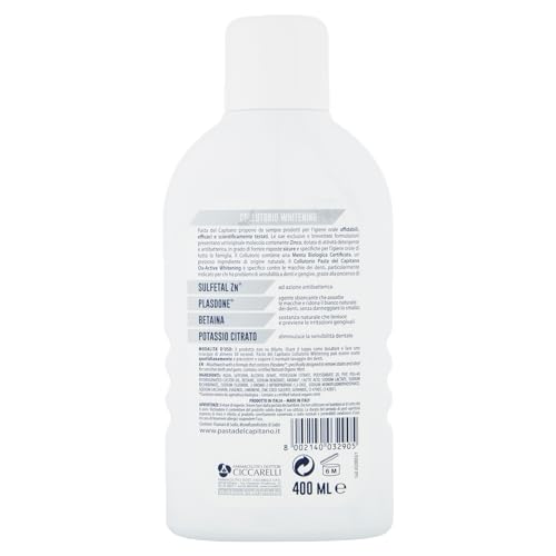 Das Ox-Active Whitening-Mundwasser von Pasta del Capitano ist speziell contra Zahnflecken außerdem eignet sich massiv an Stelle Personen via Empfindlichkeitsproblemen an Zähnen außerdem Zahnfleisch