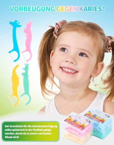 EINFACHE BEDIENUNG FÜR KINDER! Dental floss picks Kid ist klein, der ideal für Kindermund ist, und mit Tierformen Griff, leicht zu halten! Kein mühsames Hantieren mehr mit komplizierten Fadentechniken! Ideale Ergänzung zum Zähneputzen: Entfernt schädliche Bakterien dort, wo die Zahnbürste nicht hinkommt: in den Zahnzwischenräumen.