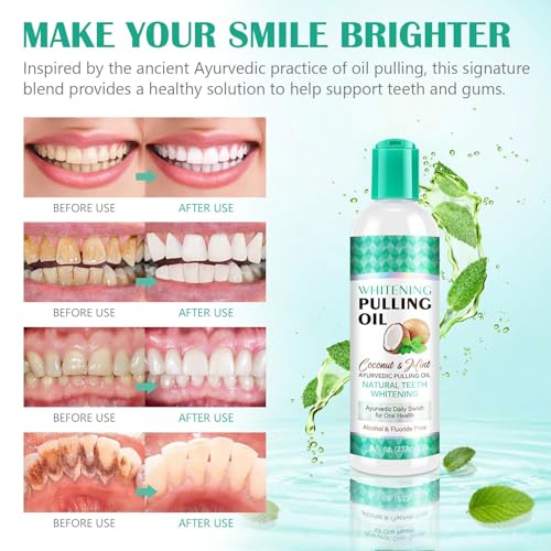 2 pack Kokosnuss-Ziehöl für die Zähne 237ml, Minzöl zum Ziehen von Mundwasser mit Zungenschaber, Mundziehöl mit Kokosnuss & Pfefferminzöl, Zahnaufhellung
