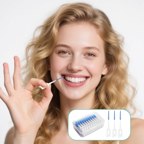 200 Stück Interdentalbürsten,Silikon Zahnzwischenraumbürsten,Tragbarer Dual-Use Zahnseide Stick für Zahnreinigung Zwischenräume(Blau)