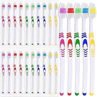 25 Bulk Zahnbürsten-Set, einzeln verpackt, manuelle Einweg-Reise-Zahnbürsten-Set für Erwachsene oder Kinder, hergestellt mit einem mittelweichen, großen Kopf, mehrfarbig, für Reisen