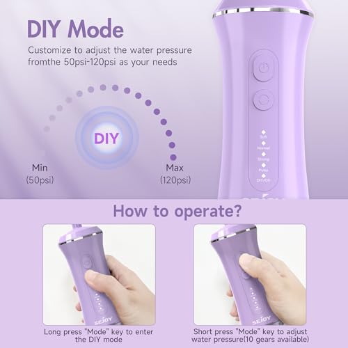 【5 professionelle Reinigungsmodi für Ihre Synchronisierung】: Weich (60 PSI) – für Kinder oder Erstbenutzer. Normal (90 PSI) – Für eine effektive Reinigung. Phantastisch (110 PSI) – Für eine gründliche Reinigung. Puls (60-110 PSI) – Zahnfleisch massieren, DIY-Modus (50-120 PSI) Zehn Geschwindigkeiten können frei an Ihre zahnärztlichen Bedürfnisse abgestimmt werden. PSI +7-8 pro Gang. Bitte entscheiden Sie den Soft-Modus, wenn Sie diese elektrische Munddusche zum ersten Mal verwenden.