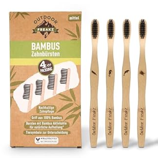 ✅ BAMBUS ZAHNBÜRSTE – Der Zahnbürstengriff besteht zu 100% sämtliche nachwachsendem Bambus-Holz, die Borsten wurden mit Bambus-Holzkohle optimiert. Schonend und nachhaltig an Stelle Sie und die Natur!