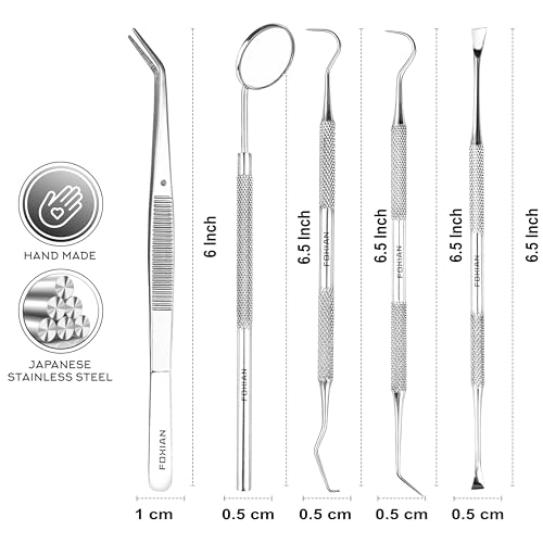 Um das Foxian Dental Hygiene Pflegeset zu verwenden, folgen Sie diesen Schritten:1. Abwaschen Sie Ihren Mund mit Wasser nicht mehr da, bevor Sie Werkzeuge verwenden. 2. Verwenden Sie Sonde und Scaler, um Zahnstein sanft von den Zähnen zu abtrennen. 3. Der Mundspiegel hilft Ihnen, Bereiche zu sehen, in denen gereinigt werden muss. 4. Zahnsteinschaber jeden verbleibenden Zahnstein 5. Pinzette Lebensmittelpartikel stecken zwischen den Zähnen 6. gründlich nach Werkzeugen 7. Reinigen Sie trockene Werkzeuge, die sie aufbewahren Kunststoffkoffer. Hinweis: Verhüten Sie übermäßige Krafteinwirkung, um Verletzungen des Zahnfleisches zu vermeiden.