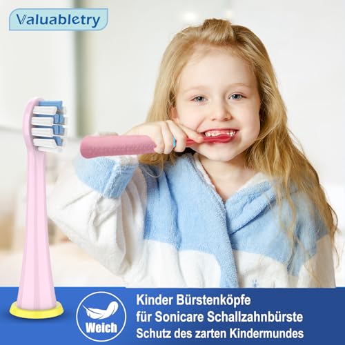 【Starke Kompatibilität】Valuabletry Kinder Zahnbürste Ersatzköpfe sind kompatibel mit Philips Sonicare Kinderzahnbürsten und Erwachsene Snap-on schallzahnbürste, einschließlich ProtectiveClean, Expertclean, Diamond Series, EasyClean, PowerUp, FlexCare Series, Platinum, HealthyWhite, 2 Series Plaque Control, 3 Series Gum Health und mehr. (Nicht kompatibel mit den Serien E und One)