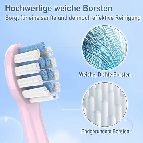 【Sanfte Pflege 】Bürstenkopf besteht jeder dichten, weichen, hochwertigen Borsten mit abgerundeten Enden, um Kindern eine sanfte, effektive Reinigung und maximalen Abschirmung für ihr empfindliches Zahnfleisch und ihren Zahnschmelz zu bieten.