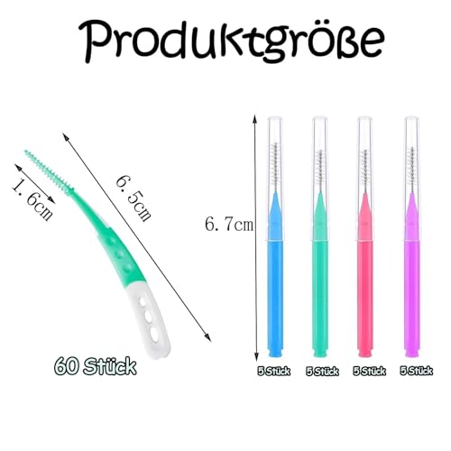 Enthält 60 grüne zahnzwischenraumbürsten mit aufbewahrungsbox und 20 farbige bürsten (betrunken, lila, pink, grün) mit spezialborsten statt dessen gründliche zahnseide stick und sanfte plaqueentfernung.