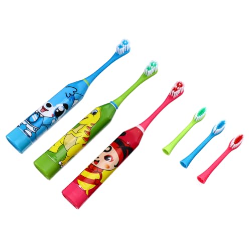 Anneome Elektrische Zahnbürste für Kinder 3-teiliges Set automatische Schallzahnbürste weiche Borsten Cartoon-Design Kinderzahnbürsten