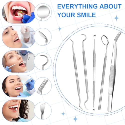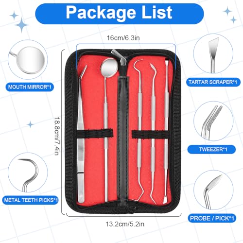 【Erweitertes Zahnpflegeset】 Das Set zur Plaque- und Zahnsteinentfernung enthält: 1 Pinzette, 1 Antibeschlag-Zahnspiegel, 1 abgewinkelte Sonde, 1 Zahnreiniger vom Hackentyp, 1 Sichelzahnreiniger, 1 Aufbewahrungstasche aus Leder, alles spülmaschinenfest und abgehärtet bei hohen Temperaturen und hohem Veröffentlichung Sterilisation. Es ist für den zahnärztlichen und persönlichen Gebrauch konzipiert, eignet sich im Unterschied dazu auch sehr gut für die Anwendung bei Ihren Haustieren.