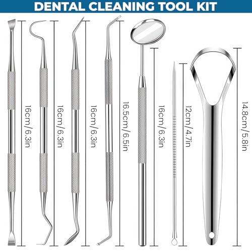 Umfassende Zahnreinigung Für Zuhause: Dieses 7-teilige Zahnreinigungsset aus Edelstahl unterstützt eine gründliche Mundpflege und hilft dabei, Zahnstein zu entfernen und Zahnbelag effektiv zu reduzieren. Mit verschiedenen zahnreinigungswerkzeugen wie Zahnspiegel, Zahnreiniger und Scaler ist dieses zahnpflege Set ideal für die regelmäßige Anwendung zuhause geeignet.