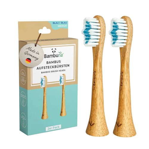 BAMBUNA Ersatzbürsten für Philips Sonicare Schallzahnbürste – Bürstenkopf aus Bambus – Aufsteckbürsten mittelweich – Bürstenkopf für Sonicare Zahnbürste – Made in Germany (blau/blau, 2er-SET)