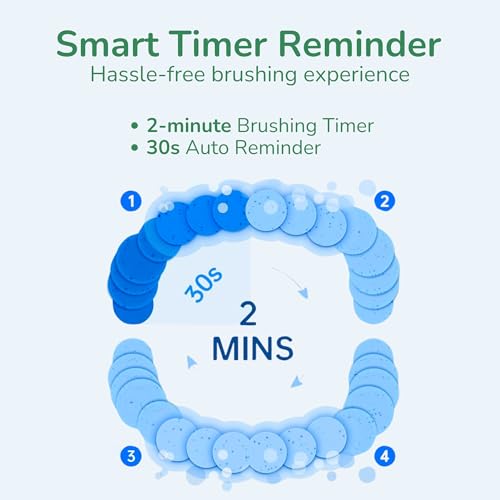 【Smart Timer mit QuadPacer Technologie】Verarbeiten Sie Ihre Putzroutine mit unserer elektrischen Zahnbürste mit 2-Minuten-Smart-Timer und QuadPacer. Diese Technologie fordert Sie alle 30 Sekunden auf, zu einem neuen Quadranten Ihres Mundes zu ändern, was eine gründliche Reinigung gewährleistet. Die Zahnbürste schaltet sich nach 2 Minuten automatisch ab, kann nunmehr alias jederzeit manuell ausgeschaltet werden.