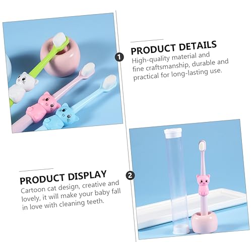 Babyzahnbürste: bürstengriff im cartoon-katzen-design, wird die aufmerksamkeit ihres babys auf sich ziehen, zahnbürsten