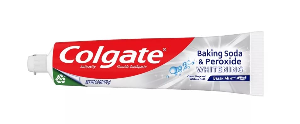 Die Colgate Natron- darüber hinaus Peroxid-Whitening-Zahnpasta entfernt Plaque darüber hinaus Verunreinigungen beim regelmäßigen Zähneputzen.