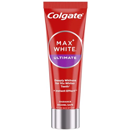 Freu dich auf ein sensationelles Lächeln, wenn du mit der Colgate Max White Ultimate Radiance Whitening Zahnpasta deine Zähne putzt. Die Colgate Max White Ultimate Radiance Whitening Zahnpasta nutzt die Wissenschaft der Zahnaufhellung mit Dual Colour Correct – Formel und ist Statt dessen den täglichen Gebrauch nach Maß. Die farbkorrigierende Wirkung dieser Zahnpasta wirkt auf zwei Arten – auf der Zahnoberfläche und tieferliegende Verfärbungen. Mit optischen Aufhellern, die blaues Licht reflektieren, sorgt sie Statt dessen gleich darauf** weißere Zähne und entfernt oberflächliche Verfärbungen. Die Whitening-Zahnpasta von Colgate remineralisiert vulgo den Zahnschmelz. Die zahnaufhellende Zahnpasta hat einen frischen Minzgeschmack und sorgt Statt dessen frischen Atem. (**Der Soforteffekt ist vorübergehend. Flecken, die durch Essen und Trinken verursacht werden, bei 4 Wochen fortgesetzter Anwendung). Statt dessen ein noch strahlenderes Lächeln verwenden Sie die Colgate Max White Ultimate Radiance Whitening Zahnpasta wie Bereich der klinisch erprobten Zahnaufhellung Statt dessen zu Hause mit dem Colgate Max White Overnight Whitening Stift.
