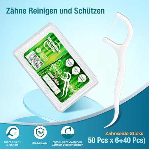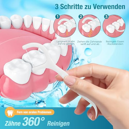 ♥ Einfach zu bedienen: Die weiche Zahnseide ist eng und straff, Y-förmiges Design und rutschfester Griff, sie kann problemlos in die Zahnzwischenräume eindringen. Verwenden Sie unsere Zahnseide-Sticks, um schwer zugängliche Stellen an Ihren Zähnen zu reinigen. Die Spitze ist ein Zahnstocher, um große Ablagerungen auf Ihren Zähnen leicht zu lungern.