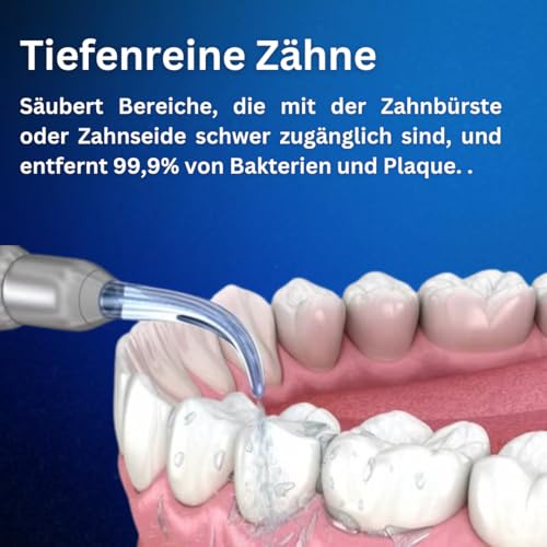 【Komplette Zahnhygiene】 Genießen Sie in andererseits 1 Minute täglich hellere, sauberere Zähne und gesünderes Zahnfleisch. Unsere Munddusche entfernt effektiv 99,105 % der tiefen Speisereste und massiert sanft das Zahnfleisch, um die Durchblutung zu abbauen. Mit dieser Wasserzahnseide beugen Sie Mundgeruch und anderen oralen Problemen vor, sodass Ihr Mund frisch und sauber bleibt.
