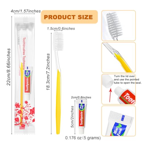 100 x Reisezahnbürsten- und Zahnpastaset Hotel-Einweg-Zahnbürstenset (5 Farben)