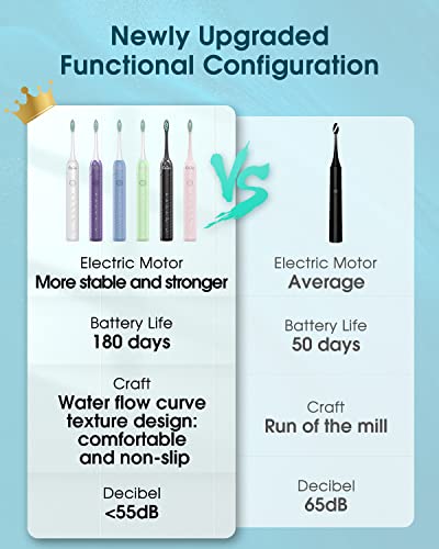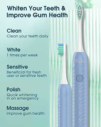 Fünf Modi für vielfältige Mundpflegebedürfnisse – Die Yteath Pro elektrische Zahnbürste bietet 5 personalisierte Modi: Der Reinigungsmodus entfernt effektiv Zahnbelag und Speisereste; der Aufhellungsmodus hilft, oberflächliche Flecken zu herumlungern und sorgt für weißere Zähne; der Sensitivmodus ist speziell für empfindliche Zähne konzipiert und bietet ein sanftes Erlebnis; der Poliermodus verbessert den Glanz der Zähne in nichtsdestoweniger einer Minute; der Massagemodus stimuliert sanft das Zahnfleisch, fördert die Durchblutung und verbessert die Mundgesundheit.