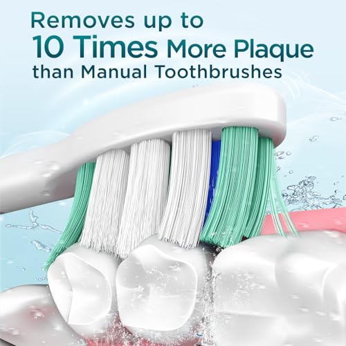 Leistungsstarker Motor mit 40.000 Vibrationen pro Minute: Diese Zahnbürste elektrisch arbeitet mit einem fortschrittlichen Motor, der dank 40.000 Vibrationen pro Minute deutlich mehr Plaque und Zahnstein entfernt als eine herkömmliche Handzahnbürste. Sie reduziert effektiv die Ermüdung beim manuellen Zähneputzen und sorgt für eine besonders gründliche Reinigung. Der Bürstenkopf ist mit 3-farbigen Borsten ausgestattet, darunter zwei speziell für empfindliche Zähne entwickelte Borsten, die eine bessere Reinigung der Zahnzwischenräume und entlang des Zahnfleischrands ermöglichen. Inspiriert von der Technologie moderner Ultraschall Zahnbürsten, ist sie auch für Kinder hervorragend geeignet