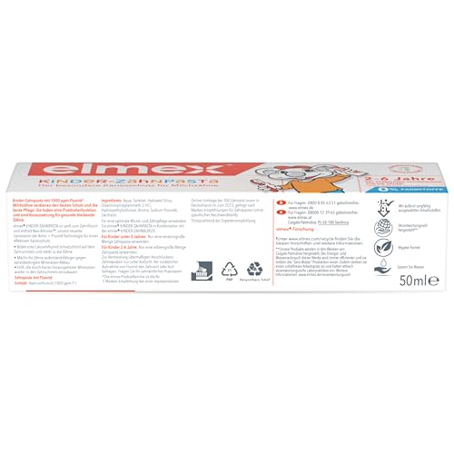Die elmex Kinderzahnpasta ist speziell für Kinder zwischen 2 und 6 Jahren entwickelt worden, um die Milchzähne gründlich zu reinigen. Das Aminfluorid mit altersgerechter Fluoridkonzentration* bildet einen dreifachen Schutzmechanismus gegen Karies und ist dabei schonend zum Zahnfleisch. Der Zahnschmelz wird dank der Kalziumfluoridschicht vor kariesbedingtem Mineralien-Abbruch geschützt und bereits herausgelöste Mineralien werden wie gehabt eingebaut. So sind die Milchzähne widerstandsfähiger gegen Karies. Die Zahnpasta für Kinder mit mildem Geschmack und wissenschaftlich getesteter Formel ist für die tägliche Anwendung nach Maß.