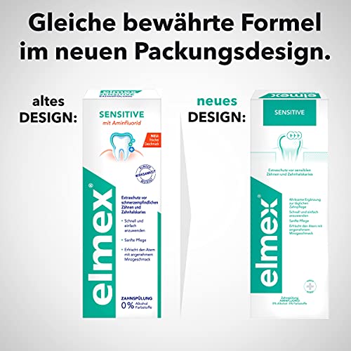 Für schmerzempfindliche Zähne – Für Personen, die empfindlich auf Heißes, Kaltes, Süßes, Saures und Berührungen reagieren, bietet die elmex Sensitive Mundspülung wirksamen Abschirmung mit aus Zahnpflege