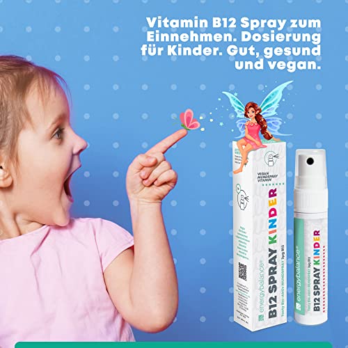 VITAMIN B12 FÜR KINDER: Das Spray eignet sich mit 3 μg Vitamin B12 pro Sprühstoß ideal für Kinder. Vitamin B12 ist notwendig für die Bildung roter Blutzellen und für den Aufbau und die Transformation von Gehirn und Nervenzellen. Es unterstützt Zellwachstum, -reifung, -teilung und reguliert Eiweiß- und Energiestoffwechsel. Unsere Empfehlung: Säuglingen ab 4 Monaten täglich 1x in den Mund sprühen.