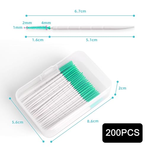 200 Bruchstück Interdentalbürsten, Silikon Zahnzwischenraumbürsten Gabelung Dentalbürsten mit Box, Dentalbürsten für Zahnreinigung zwischenräume Werkzeug(Grün)