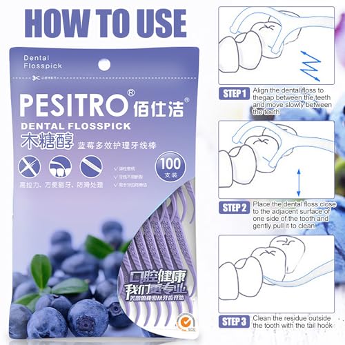 2. Diese dental floss ist Zahnbürste und Zahnstocher zugleich und reinigt Zähne und Zahnfleisch gründlich, insbesondere die Zwischenräume, die mit einer Zahnbürste nicht erreicht werden. Der floss-Griff hat ein einzigartiges handliches Design und ist rutschfest, was die Handhabung hart im Nehmen und einfach macht. Er lässt sich leicht in die Zahnzwischenräume einführen und sticht nicht ins Zahnfleisch. 3. Ein kleiner, tragbarer Aufbewahrungsbeutel mit 100 dental floss ermöglicht die bequeme Reinigung jederzeit und überall – besonders geeignet für Touristen und Geschäftsleute. Unser dental floss ist in den Geschmacksrichtungen Blaubeere und Minze erhältlich. Diese drei Geschmacksrichtungen verleihen Ihnen ein unvergleichliches Frischegefühl und sorgen jederzeit für ein selbstbewusstes Lächeln!