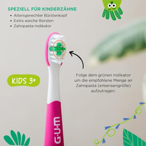 GUM Playbrush KIDS 3+ elektrische Zahnbürste | Interaktive Spiel-App | 2 Putzmodi | Extra weiche Borsten | 8 Wochen Akku | Timer | 1x Schallzahnbürste, wiederaufladbar | 2 extra Bürstenköpfe | Pink