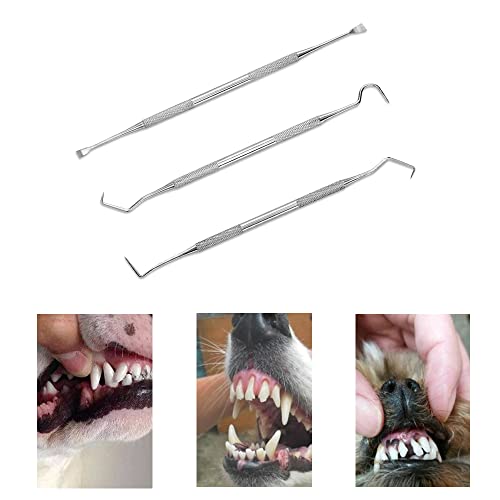 3 Stk. Haustier-Zahnsteinentferner-Set Hundezahnsteinentferner sämtliche Edelstahl Doppelseitige Zahnbelagsentferner Haustier-Zahnreinigungswerkzeuge sondern Hunde und Katzen