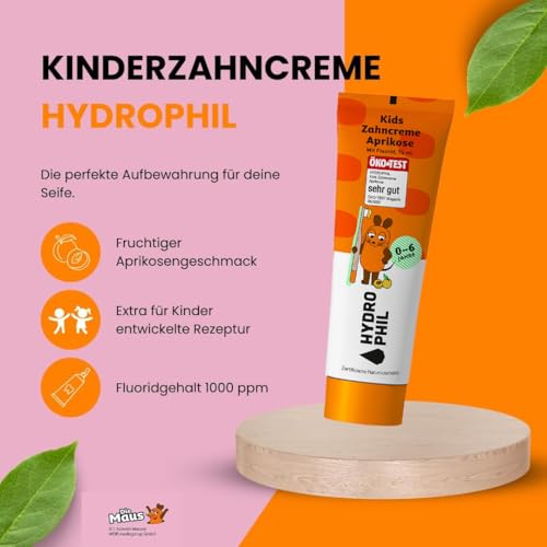Hydrophil Zahncreme für Kinder – 2er Pack – Naturkosmetik + Öko Testsieger – Mit Aprikosen Geschmack – Kinderzahnpasta 2-6 und 0-2 – Baby Zahnpasta – Junior – Mit Fluorid (2)