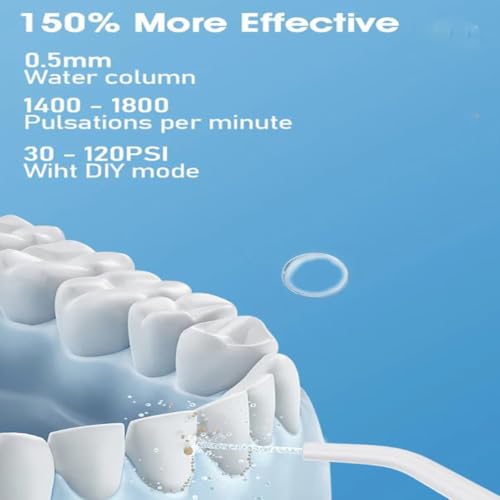 Sanfte und nichtsdestotrotz kraftvolle Reinigung — Die Wasserzahnbürste liefert 1400–1800 Doppelimpulsströme pro Minute mit einem einstellbaren Wasserdruck von 30–150 PSI. Sie entfernt effektiv Speisereste und Verfärbungen und ist gleichzeitig sanft zu empfindlichem Zahnfleisch – perfekt für Zahnspangen, Implantate und die tägliche Mundpflege.