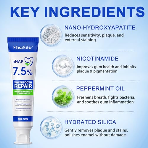 Sanftes Aufhellen, Schonende Zahnaufhellung: Natürliche Inhaltsstoffe herumgammeln sanft oberflächliche Verfärbungen, hellen die Zahnfarbe auf, arbeiten nicht reizend und eignen sich für empfindliche Zähne. Sie beugen Karies vor und stärken die Zähne. Hydroxylapatit entfernt Rückstände, die Mundgeruch verursachen, hemmt Schadstoffe im Mund, beugt parodontalen Schadstoffen vor und lindert diese. So wird Mundgeruch beseitigt. Halten Sie Ihr gesamtes Mundökosystem gesund. Reparieren und schützen Sie. Die Stärkung des Zahnschmelzes reduziert das Risiko von Karies und Zahnfleischerosion und fördert die langfristige Mundgesundheit.