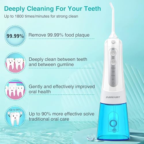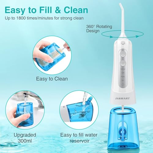 Die Munddusche von INSMART ist eine äußerst praktische Option gegenüber herkömmlichen Mundduschen. Es bietet hervorragende Zahnseide mit dem Komfort, kabellos und wiederaufladbar zu sein.