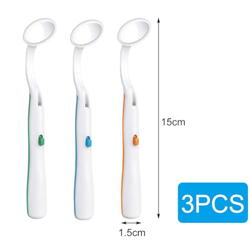 JIEYUCHU Zahnarztspiegel mit LED Licht, 3 Stück Mundspiegel mit Anti-Fog-Beschichtung, Oral Dental Mirror Dentalspiegel, Dentalspiegel für eine bessere Zahnpflege (Blau+Orange+Grün)
