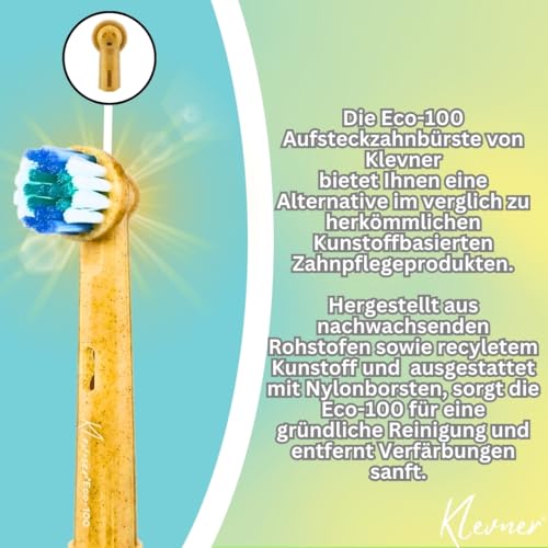 Perfekte Kompatibilität: Die Eco+100 Oral B Aufsteckbürsten von Klevner Entwickelt für Modelle wie oral b Pro, oral b Smart , oral b Genius x , Oral B oral b vitality Oral b Trizone und andere oszillierende Handzahnbürsten (nicht qualifiziert für Schallzahnbürsten). Garantiert passgenau für eine optimale Leistung. Nicht für philips sonicare ersatzbürsten oder als oral b io aufsteckbürsten qualifiziert.