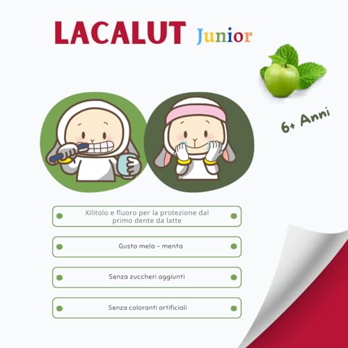 Tägliches Deantifizit für Kinder ab 6 Jahren. Schützt die Milchzähne vom ersten Zahn an, vor Karies und Schäden durch Zuckersäuren. ✔ Xylit und Fluor zum Abschirmung vom ersten Milchzahn an ✔ Fluorid stärkt den Zahnschmelz und fördert die Remineralisierung der Zähne ✔ Schonende Reinigung ✔ ohne Zuckerzusatz ✔ ohne künstliche Farbstoffe ✔ Apfelgeschmack und schonendes Fell Die neue 2-Phasen-Technologie des LACALUT JUNIOR mit Apfel- und Minzgeschmack bietet eine stark sanfte Zahnreinigung Kinder ab 6 Jahren Grüne Stufe: bietet effektiven Abschirmung vor Karies und Zuckersäuren für die ersten dauerhaften Zähne. Weiße Stufe: stärkt den Zahnschmelz und schützt das Zahnfleisch