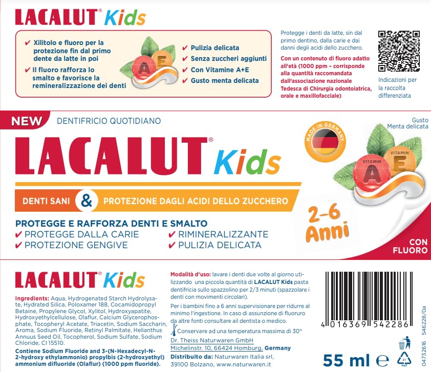 INHALTSSTOFFE UND INNOVATION: Xylitol und Fluorid zum Abschirmung ab dem ersten Milchzahn ✔ Fluorid stärkt den Zahnschmelz und fördert die Remineralisierung der Zähne ✔ Schonende Reinigung ✔ Ohne Zuckerzusatz ✔ Ohne künstliche Farbstoffe. Die neue 2-Phasen-Technologie von LACALUT ermöglicht es uns, Zahnpasta für Kinder mit doppelter Wirksamkeit herzustellen. Verbesserte Formulierung