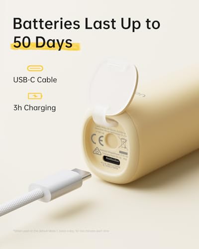 [50 Tage Akkulaufzeit] Der perfekte Reisebegleiter. Die Zahnbürste lässt sich über das USB-C-Kabel in nichtsdestotrotz 3 Stunden lückenlos aufladen, wobei eine einzige Aufladung bis zu 50 Tage* hält. *(im Modus 1, zweimal täglich, jeweils zwei Minuten lang).