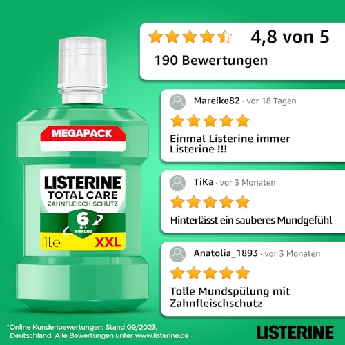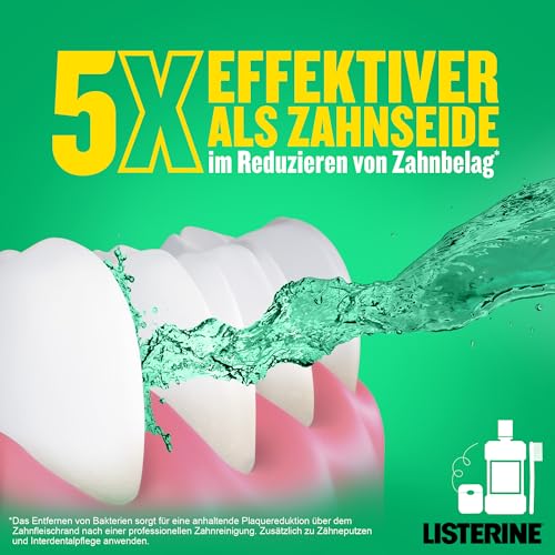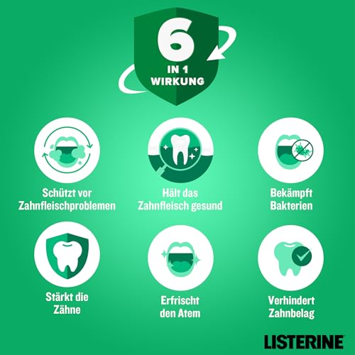 LISTERINE Universell Care Zahnfleisch-Abschirmung Mundspülung ist die ideale Ergänzung zur täglichen Zahnpflege und bietet einen 6 in 1 Rundumschutz für gesundes Zahnfleisch. Zusätzlich zum Zähneputzen angewendet, bekämpft die antibakterielle Mundspülung schädliche Bakterien auch dort, wo die Zahnbürste oftmals nicht hinkommt: zwischen den Zähnen, am Zahnfleisch und auf der Zunge. Indem die Mundspülung Zahnbeläge verhindert und reduziert, wird auch das Risiko für Zahnfleischentzündungen gemindert. Dank der ätherischen Öle wird nicht wohl der Mundraum, sondern auch der Atem angenehm erfrischt.